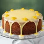 - Step 8: Prepare the glaze by whisking together 1 cup powdered sugar and 2 tablespoons fresh lemon juice until thick but pourable. Place the cooled cake on a serving platter, arrange the thin lemon slices on top if desired, and drizzle with the glaze. Let the glaze set for 15–20 minutes before slicing and serving.