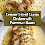 This Baked Caesar Chicken with Creamy Parmesan Sauce is a deliciously simple dinner that delivers rich, comforting flavors. Tender chicken breasts are baked in a savory Parmesan cream sauce, making it perfect for a weeknight meal or special occasion.