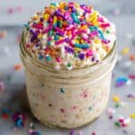 Store Birthday Cake Overnight Oats in airtight containers in the refrigerator for up to 5 days. The texture may firm up slightly over time. To reheat, microwave for 30-60 seconds and add a splash of milk if needed to loosen the consistency.
