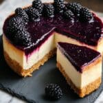 - Assemble & Serve: Once the cheesecake is cooled, spread the blackberry topping evenly over the surface. Refrigerate the assembled cheesecake for at least 4 hours or overnight to set fully. Just before serving, garnish with additional fresh blackberries for a vibrant presentation. Enjoy!