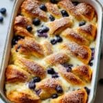 This Blueberry Cream Cheese Croissant Casserole is a decadent and comforting breakfast or brunch dish featuring flaky croissants soaked in a creamy mixture of cream cheese, eggs, milk, and sweet maple syrup, studded with fresh blueberries and baked to golden perfection. It’s perfect for a special occasion or weekend treat.