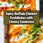 Buffalo Chicken Enchiladas combine the spicy tang of Buffalo sauce with creamy cheese and tender chicken, wrapped in warm tortillas. This easy-to-make dish is perfect for a flavorful weeknight dinner or game day treat that everyone will love.