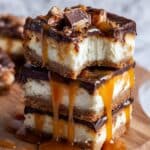 These Butterfinger Caramel Cheesecake Bars combine a creamy cheesecake base with crunchy Butterfinger candy and rich caramel sauce for a decadent treat. Perfectly balanced between sweet and crunchy, they make an impressive dessert for any occasion.