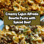 Cajun Cream Cheese Alfredo Bowties with Spiced Ground Beef is a flavorful twist on classic Alfredo pasta. Creamy, cheesy sauce combined with spicy ground beef and tender bowtie pasta creates a satisfying, comforting meal that’s easy to prepare on any weeknight.
