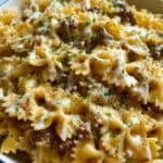 This Cajun Cream Cheese Alfredo Bowties recipe combines tender bowtie pasta with a rich, spicy cream sauce and savory ground beef. It’s a comforting, flavorful dish perfect for a hearty weeknight dinner.