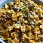 This Cajun Cream Cheese Alfredo Bowties with Spiced Ground Beef is a flavorful and creamy pasta dish that combines tender bowtie pasta with a rich, cheesy Alfredo sauce kicked up with Cajun seasoning and hearty ground beef. Perfect for a comforting weeknight dinner, the dish balances creamy textures with bold spices for an indulgent yet easy-to-make meal.