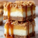 These Caramel Apple Cheesecake Bars combine a buttery graham cracker crust with a smooth, creamy cheesecake filling layered with fresh apple slices and luscious caramel sauce. Perfectly baked to golden perfection, these bars offer a delightful balance of sweet and tart flavors, making them an irresistible treat for any occasion.