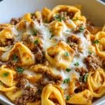 Cheesesteak Tortellini in a Rich Provolone Sauce is a clever fusion of two beloved dishes. This recipe combines tender beef, sautéed vegetables, and cheese-filled tortellini all coated in a creamy provolone sauce. It’s comfort food elevated with a smooth, cheesy finish that’s perfect for a satisfying meal.