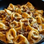 Cheesesteak Tortellini in Rich Provolone Sauce is a comforting twist on a classic Philly cheesesteak. Tender cheese tortellini tossed with savory beef, sautéed peppers, and onions, all coated in a creamy provolone cheese sauce. It’s a quick, flavorful meal perfect for any night of the week.