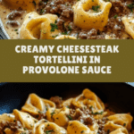 Cheesesteak Tortellini in Rich Provolone Sauce is a hearty and indulgent dish combining tender cheese tortellini with thinly sliced beef, sautéed bell peppers, and onions, all smothered in a creamy, flavorful provolone cheese sauce. This recipe brings together the classic flavors of a cheesesteak sandwich in a warm and comforting pasta dish, perfect for a satisfying weeknight dinner.