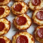 These Pizza Chips are a delightful, crispy snack combining gooey mozzarella, mini pepperoni slices, and flavorful Italian seasoning. Baked to golden perfection in a mini muffin pan, they make an irresistible appetizer or party bite, perfect for serving with marinara, ranch, or enjoyed on their own.