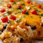 Cheesy Salsa Chicken and Rice Bake is a flavorful and comforting one-dish meal combining shredded chicken, rice, salsa, and a melty cheese topping. This easy-to-make casserole is perfect for busy weeknights and offers a delicious blend of Tex-Mex spices with creamy cheddar cheese baked to bubbly perfection.