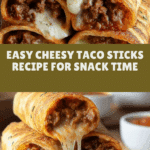 Cheesy Taco Sticks are a fun and flavorful snack perfect for game days or casual gatherings. These twisted breadsticks are filled with seasoned ground beef and a blend of melted cheeses, making every bite deliciously satisfying. Serve them warm with salsa and sour cream for dipping.