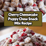Cherry Cheesecake Puppy Chow is a sweet and crunchy snack mix that combines the flavors of white chocolate, cherry, and cheesecake pudding with crispy Chex cereal. It’s an easy no-bake treat perfect for parties, movie nights, or anytime you want a delightful homemade snack.
