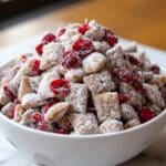 Cherry Cheesecake Puppy Chow is a delightful and easy-to-make snack that combines crispy Chex cereal with a creamy white chocolate and cherry gelatin coating, dusted with a cheesecake-flavored sugar mix and studded with dried cherries. This sweet treat is perfect for parties, movie nights, or any occasion that calls for a fun, irresistible dessert snack.