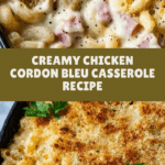 Keywords: Chicken Cordon Bleu, Casserole, Baked Chicken, Comfort Food, Swiss Cheese, Creamy Pasta