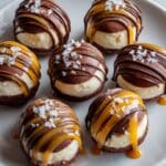 Indulge in these rich and creamy Chocolate Caramel Cheesecake Bites that combine velvety chocolate cheesecake filling with a smooth chocolate coating and decadent caramel drizzle. Perfect bite-sized treats for dessert lovers looking for a quick and easy no-bake delight.