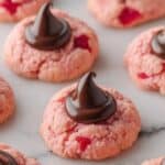 Chocolate Cherry Blossoms are delightful, soft cookies infused with cherry juice, chopped maraschino cherries, and a hint of almond extract. Topped with a luscious Hershey’s Kiss and a sweet almond glaze, these cookies offer a perfect blend of fruity and chocolatey flavors, ideal for festive occasions or everyday treats.