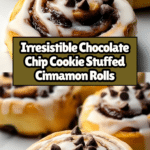 Indulge in a delightful twist on classic cinnamon rolls by stuffing them with rich chocolate chip cookie dough. This recipe combines the soft, gooey cinnamon rolls with a surprise chocolate chip cookie center, baked to golden perfection and finished with a sweet frosting drizzle. Perfect for a special breakfast or dessert that impresses with every bite.