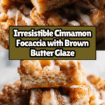 This Cinnamon Focaccia recipe offers a delightful twist on traditional Italian focaccia by incorporating sweet cinnamon and brown butter flavors. Soft and fluffy with a golden crust, it’s topped with a luscious cinnamon-butter glaze and finished with a vanilla icing drizzle, making it perfect as a dessert or sweet snack.