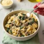 Store leftovers in an airtight container in the refrigerator for up to 4 days. The pasta will absorb some sauce, so add a splash of broth or cream when reheating to loosen it. You can freeze the dish for up to 2 months; cream-based sauces may separate slightly but will come back together with stirring. Reheat gently on the stovetop over medium-low heat or in the microwave, stirring occasionally.