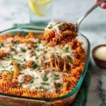 Keywords: ground beef pasta bake, baked pasta, fusilli pasta recipe, comforting pasta bake, easy dinner, Italian pasta bake, mozzarella pasta bake