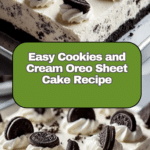 This Cookies and Cream Sheet Cake is a delightful dessert featuring a moist, tender cake studded with chopped Oreo cookies and topped with a rich, creamy buttercream frosting blended with more Oreo pieces. Perfect for celebrations or any time you crave a sweet treat, this easy-to-make sheet cake combines classic flavors with a fun cookies and cream twist.