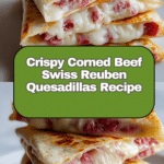 Corned Beef Swiss Reuben Quesadillas combine the savory flavors of classic Reuben sandwiches with the crispy, melty delight of quesadillas. Filled with tender corned beef, melted Swiss cheese, tangy sauerkraut, and a smoky, creamy sauce, these quesadillas are pan-fried to golden perfection for a delicious twist on a deli favorite.