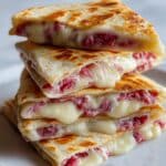 Corned Beef Swiss Reuben Quesadillas combine the savory flavors of classic Reuben sandwiches with the crispy, melty delight of quesadillas. Filled with tender corned beef, melted Swiss cheese, tangy sauerkraut, and a smoky, creamy sauce, these quesadillas are pan-fried to golden perfection for a delicious twist on a deli favorite.