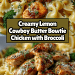 This Cowboy Butter Lemon Bowtie Chicken with Broccoli is a flavorful one-pan dish combining tender Cajun-spiced chicken, al dente bowtie pasta, and fresh broccoli, all coated in a rich lemon butter sauce accented with garlic, Dijon mustard, and fresh herbs. It’s a vibrant and satisfying meal perfect for a family dinner or meal prep.