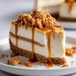 - Add Topping and Serve: Before serving, warm the Biscoff cookie butter slightly and drizzle it over the top of the cheesecake. Garnish with whipped cream or crushed Biscoff cookies if desired for added texture and presentation.