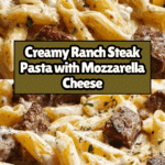 This Creamy Ranch Steak & Mozzarella Garlic Butter Pasta is a comforting and flavorful dish perfect for a hearty weeknight dinner. Tender seared steak pieces combine with a rich, cheesy ranch sauce to coat al dente penne pasta, delivering creamy, garlicky goodness in every bite.