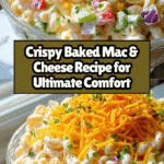 This Crispy Baked Mac & Cheese recipe delivers a rich, creamy, and cheesy pasta dish with a golden, crunchy breadcrumb topping. Perfectly cooked elbow macaroni is enveloped in a velvety cheese sauce made from a combination of sharp cheddar, Gruyère, and mozzarella, enhanced with subtle spices and baked to bubbly perfection. An irresistible comfort food classic elevated with a crisp, buttery panko crust.