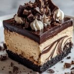 Keywords: triple chocolate cheesecake, chocolate dessert, Oreo crust cheesecake, layered cheesecake, celebration dessert, creamy cheesecake