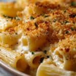 - Add Cheese & Breadcrumbs: After baking for 30 minutes, carefully remove the foil and stir the casserole to distribute heat and ingredients. The pasta will still be firm and some liquid will remain—this is expected. Evenly top the casserole with shredded mozzarella cheese, Panko breadcrumbs, and grated Parmesan cheese.