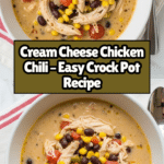 This Easy Crock Pot Cream Cheese Chicken Chili is a comforting, creamy chili made effortlessly in a slow cooker. With tender chicken breasts simmered alongside black beans, corn, Rotel tomatoes, and ranch seasoning, it’s an ideal hearty meal perfect for busy days or cozy nights. The addition of cream cheese adds a rich, velvety texture that makes this chili delightfully creamy without extra fuss.