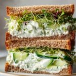 These Easy Cucumber Salad Sandwiches combine crisp, refreshing cucumbers with a creamy, flavorful yogurt and feta mixture, fresh herbs, and tangy lemon. Layered between whole-grain bread with alfalfa sprouts and red onion, they make a light, healthy, and delicious vegetarian lunch or snack that’s quick to prepare and perfect for warm days.