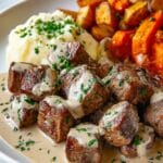 These Easy Garlic Butter Steak Bites with a Rich Parmesan Cream Sauce offer a quick and indulgent dinner full of bold, buttery flavors. Perfectly seared steak cubes are coated in garlic butter and served with a creamy, cheesy Parmesan sauce. Ready in just 30 minutes, this comforting American dish pairs beautifully with pasta, mashed potatoes, or roasted vegetables, making it an ideal meal for a satisfying weeknight dinner or special occasion.