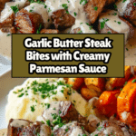 Keywords: Garlic Butter Steak Bites, Parmesan Cream Sauce, Quick Steak Recipe, Creamy Steak Bites, Easy Dinner, American Steak Dish, Garlic Butter Steak