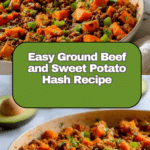This Easy Ground Beef and Sweet Potato Hash is a flavorful and hearty one-pan meal perfect for breakfast, lunch, or dinner. Combining tender, caramelized sweet potatoes with well-seasoned ground beef and aromatic vegetables, this dish offers a comforting and satisfying flavor profile with a blend of spices that enhance every bite. It’s quick to prepare and cooks entirely on the stovetop, making it an ideal weeknight recipe.