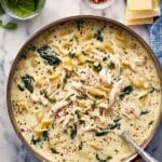 - Combine Ingredients: Return shredded chicken to the pot, add the cooked pasta and fresh spinach. Stir gently and let heat through for 1-2 minutes until spinach wilts. Adjust seasoning if needed.