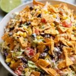- Garnish and serve: Just before serving, sprinkle the reserved handful of Chili Cheese Fritos on top of the salad for an extra crunchy garnish. Serve immediately to enjoy the best combination of textures and flavors.