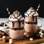 Frozen Hot Chocolate is a rich and creamy blended treat that combines icy cold texture with the deep flavors of hot cocoa. Perfect for chocolate lovers, this refreshing beverage blends hot cocoa mix, milk, and ice into a frosty dessert drink topped with whipped cream and a drizzle of chocolate syrup for an indulgent finish.