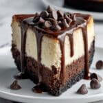 - Finish and Serve: Pour the chocolate ganache over the chilled cheesecake surface. Optionally, sprinkle extra chocolate chips on top. Slice and serve your decadent fudgy brownie bottom cheesecake.