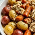This Garlic Butter Chicken Crockpot Recipe is a delicious and easy slow cooker meal featuring tender chicken breasts or thighs cooked to perfection with baby red potatoes, carrots, and a rich garlic butter sauce seasoned with Italian herbs. Perfect for a comforting family dinner with minimal prep and maximum flavor.