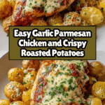 This Garlic Parmesan Chicken and Potatoes recipe is a simple, flavorful one-pan meal perfect for any weeknight dinner. Tender chicken breasts are roasted alongside crispy baby potatoes, all coated in a rich garlic butter and parmesan mixture. It’s easy to prepare and sure to become a family favorite.