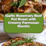 Keywords: beef pot roast, garlic rosemary roast, creamy risotto, comfort food, slow cooked beef, Arborio rice, Parmesan risotto