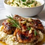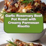 Enjoy a hearty and comforting meal with this Garlic Rosemary Beef Pot Roast served alongside a creamy, cheesy risotto. This classic combination brings tender, flavorful beef together with rich, velvety rice, perfect for family dinners or special occasions.