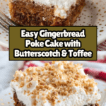 Keywords: Gingerbread poke cake, holiday dessert, moist gingerbread cake, butterscotch topping, poke cake recipe, easy holiday cake, festive dessert