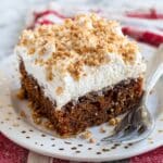 Keywords: Gingerbread poke cake, holiday dessert, moist gingerbread cake, butterscotch topping, poke cake recipe, easy holiday cake, festive dessert